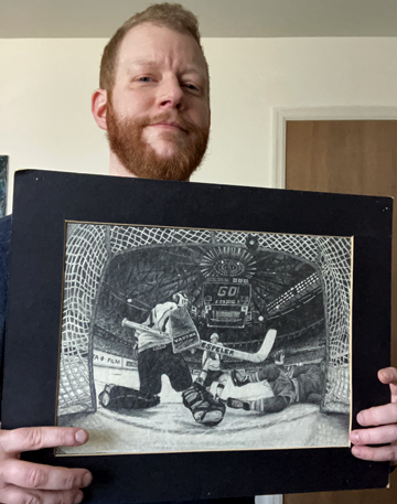 A pencil drawing of the photo on the cover of the NHL '95 video game that I drew all the way back in 1998.